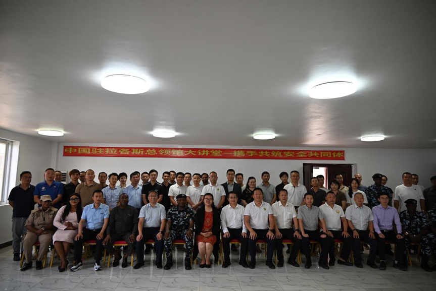 12月13日,驻拉各斯总领馆第五期大讲堂在奥贡广东自贸区管理公司成功举办,以“携手共建安全共同体”为主题,邀请尼日利亚二大区警察局局长法约阿德就尼日利亚宏观安全形势、在尼外国公民权益、维护个人企业安全举措、反绑架等主题进行授课。领区侨界和近百家企业代表,尼警察、移民、海关、安全部门负责人出席活动。